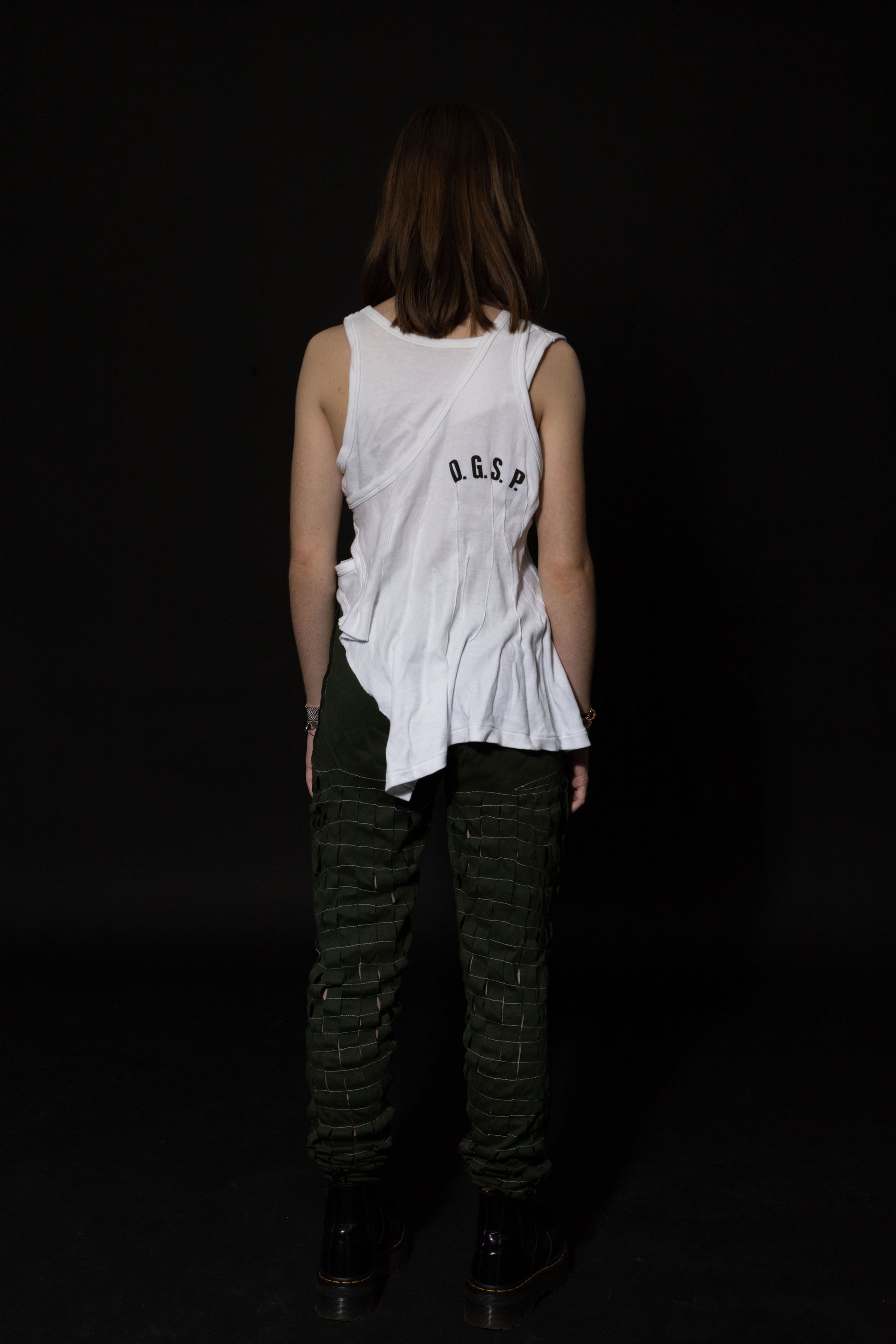 Débardeurs coupés et réassemblés pour venir suivre les courbes du corps créant un drapé dégoulinant, nonchalant.