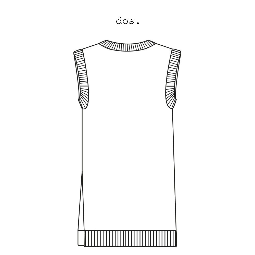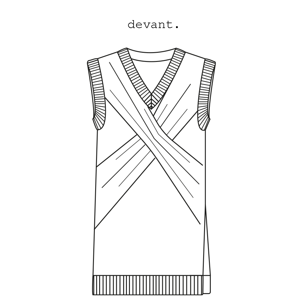 Pull col V, croisure milieu devant, fente côté gauche, finition bord côte maille.
